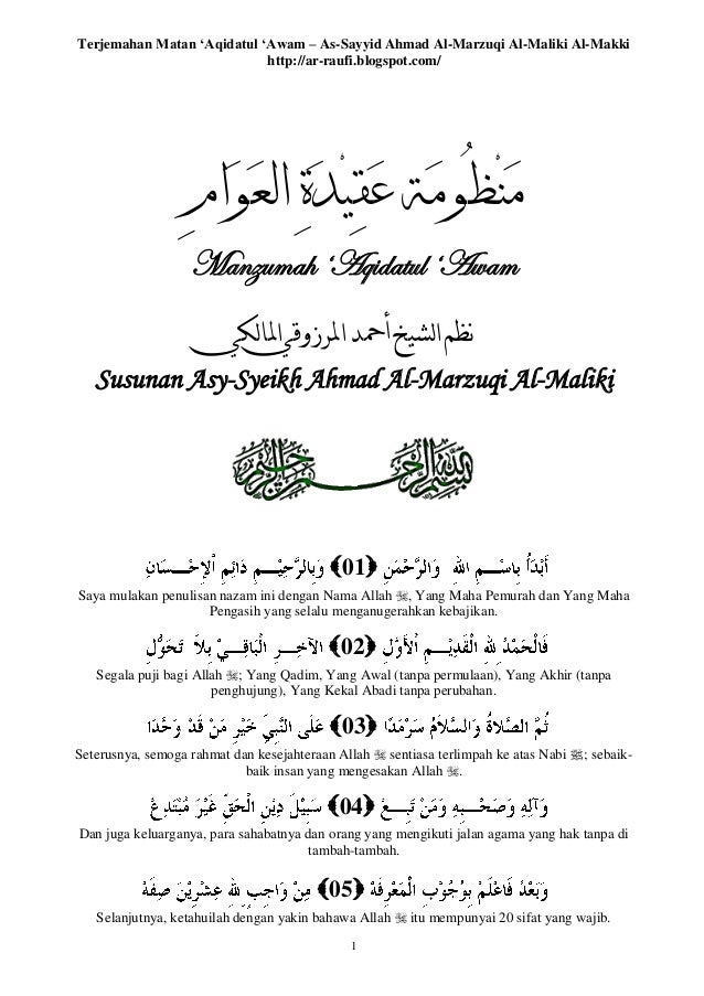 Aqidatul Awam Dan Terjemah Lengkap Preview dan Bab