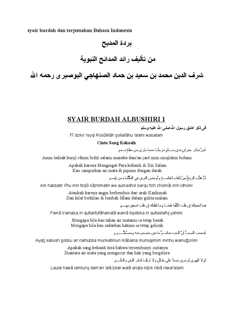 terjemahan burdah dalam bahasa indonesia lengkap Download